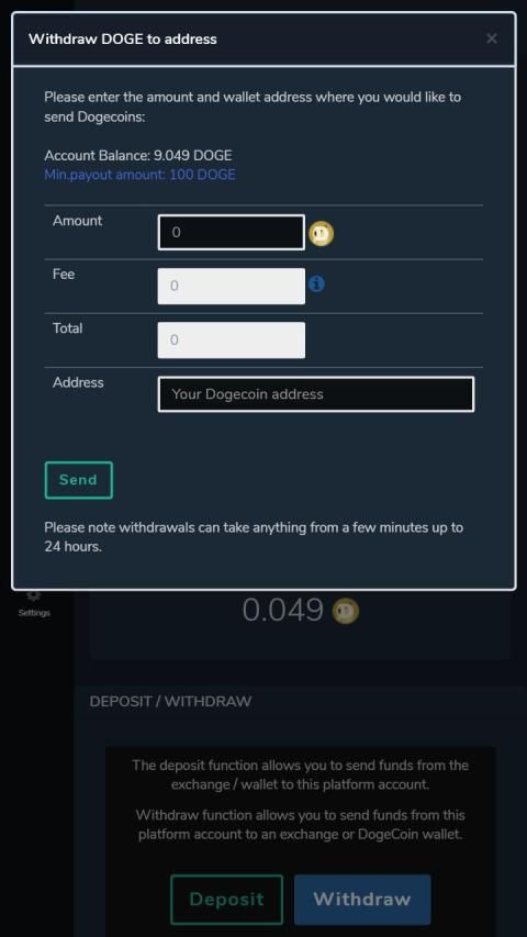 - Minimum input 100 DOGE