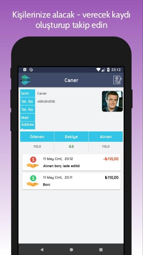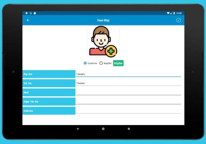 - Müşteri ve Tedarikçi olarak telefon rehberi gibi kişi kaydetme