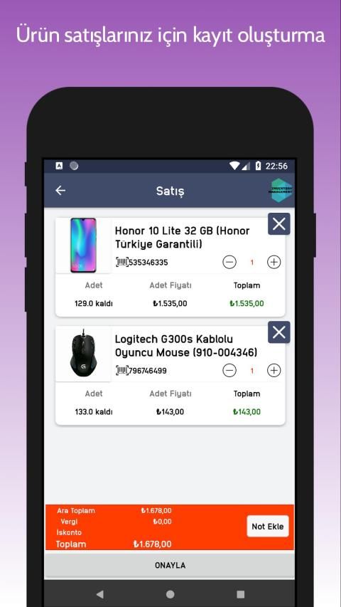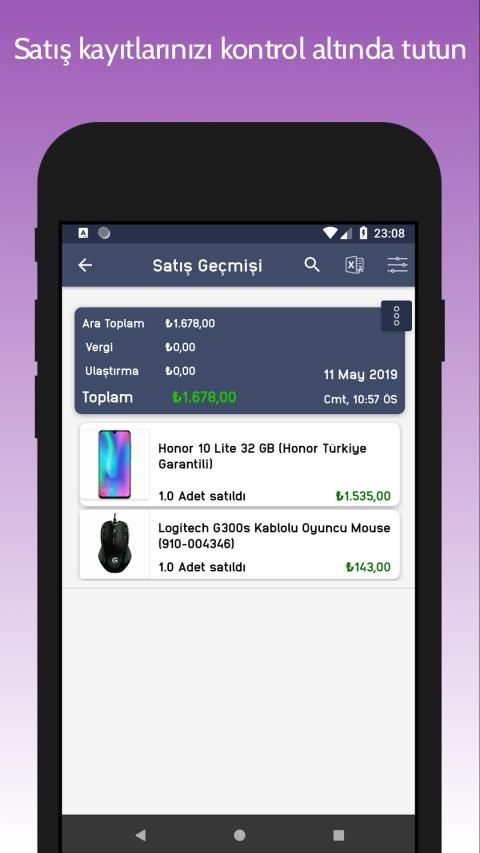 • Ürünlerinizi veya hizmetlerinizi kayıt altına alabilirsiniz. Satış yapma özelliği ile sattığınız ürünlere ait geçmişi görüntüleyebilirsiniz, bu kayıtları excel’e aktarabilirsiniz.