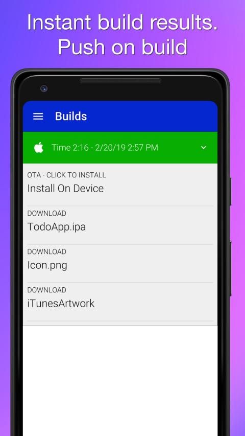 यह ऐप कोडनेम वन बिल्ड सर्वर को एक मोबाइल इंटरफ़ेस प्रदान करता है। बिल्ड खत्म होने पर आपको पुश नोटिफिकेशन मिलते हैं और ऐप से सीधे बिल्ड इंस्टॉल कर सकते हैं। आप ऐप से अपने खाते और सदस्यता का प्रबंधन भी कर सकते हैं।