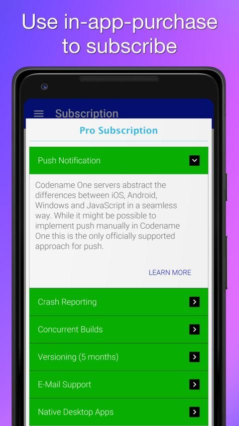 This app provides a mobile interface to the Codename One build server. You get push notifications when a build is finished and can install builds directly from the app. You can also manage your account and subscription from the app.