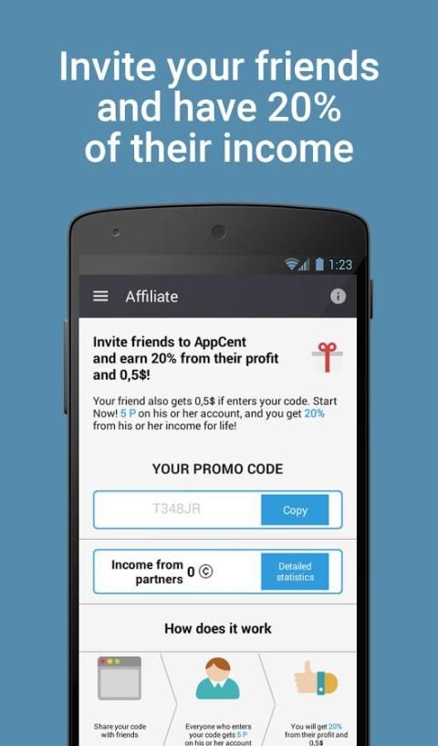 4) Invite your friends and make 20% from each dollar they earn in the app!