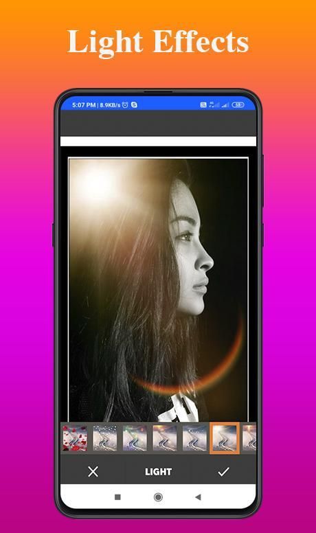 रिच ग्राफिक्स और एक आकर्षक यूजर इंटरफेस। इंटरफ़ेस का उपयोग करने के लिए आसान है। यह एक फोटो एडिटिंग टूल है।