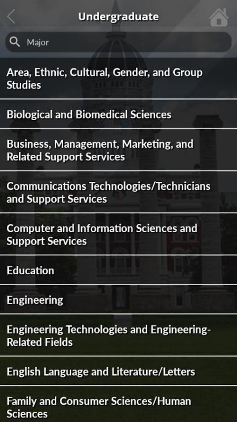 ** शीघ्र खोज (नीचे टैब पर खोज बटन उन कॉलेजों प्रमुख केवल द्वारा फिल्टर करने के लिए अनुमति देता है)