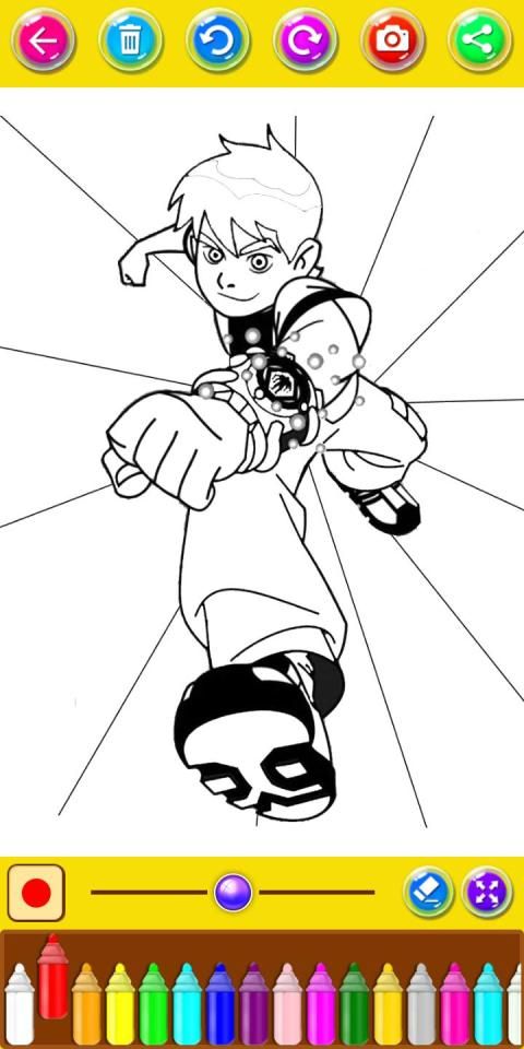 With Ben Ten coloring Pages application, you can painting the Ben Ten pictures simply and easily.
