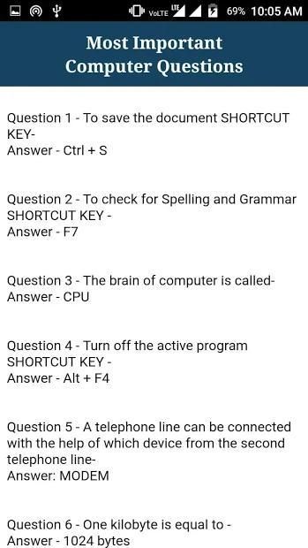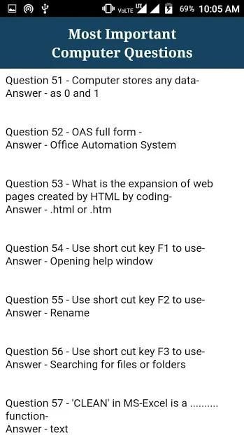 This App Cotains All Type Computer General Knowledge Question and Answers For All Govt Exams.