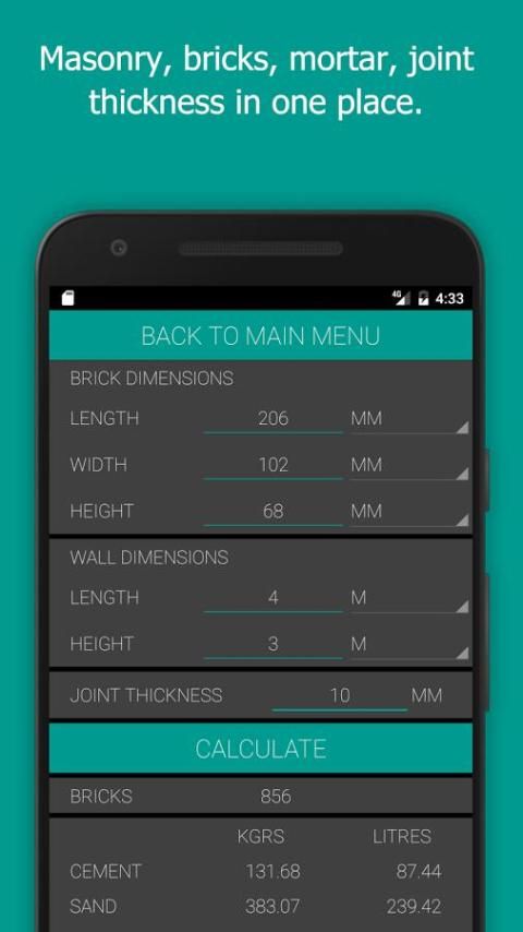 सीमेंट व्यंजनों लोग हैं, जो ठोस, मोर्टार और प्लास्टर तैयार करना चाहते हैं, लेकिन पता है या आवश्यक सामग्री के मिश्रण अनुपात को याद नहीं है के लिए बनाया गया एक app है। सीमेंट व्यंजनों काफी सही कंक्रीट, मोर्टार और प्लास्टर के लिए सामग्री की गणना करने के लिए केवल जरूरत अनुप्रयोग के साथ आयाम, ठोस ताकत, ईंट आयाम आदि की तरह है और एक बटन की धक्का पर आप के लिए सामग्री की मात्रा में है कुछ डेटा दर्ज करने के लिए है खास काम।
