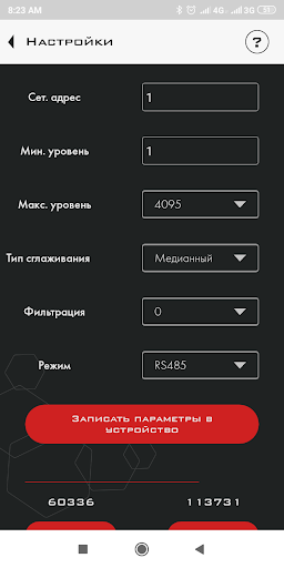 एप्लिकेशन आपको सेंसर की मूल सेटिंग्स करने की अनुमति देता है: