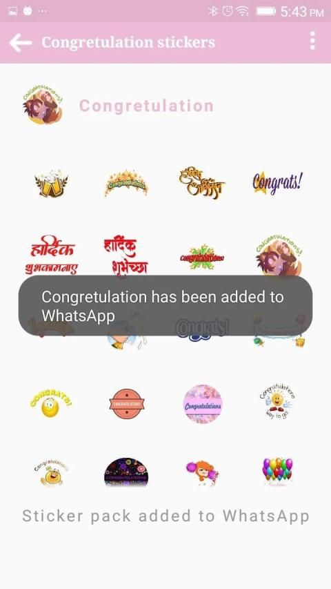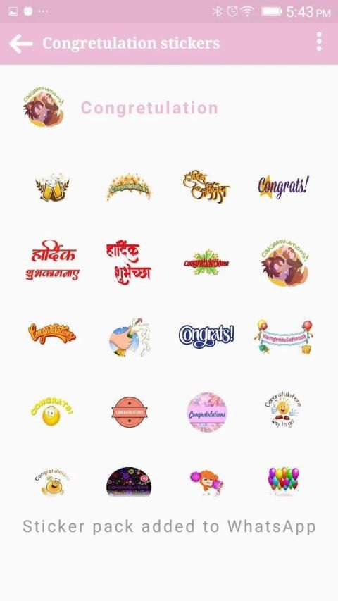 Congratulations sticker whatsapp application have the best stickers and serves the best quality stickers. Congratulations stickers could be shared easily with everyone. Congratulations stickers have the best quality. Congrats stickers could be shared with friends, parents, relatives etc. Shubhkamnayein stickers are also available easily.