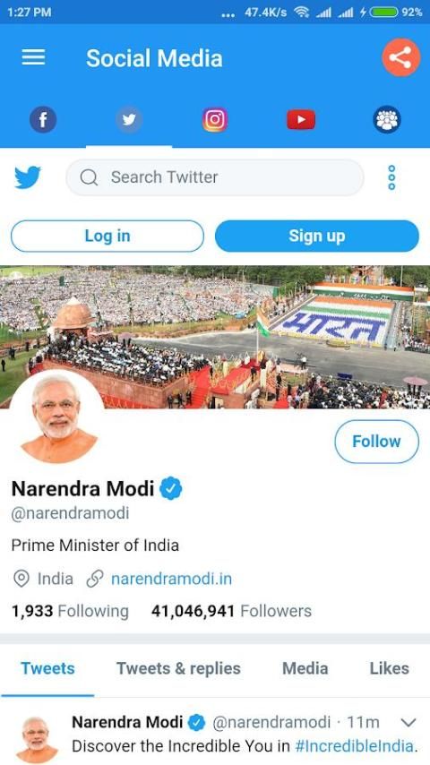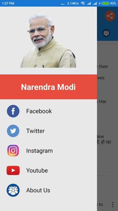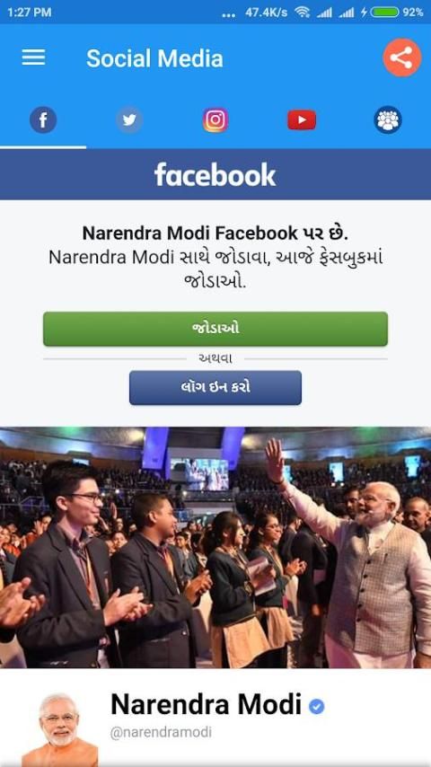 - Acess श्री नरेन्द्र मोदी जी फेसबुक पेज, ट्विटर खाता, इंस्टाग्राम और यह भी अपने सामाजिक मीडिया खातों का उपयोग।