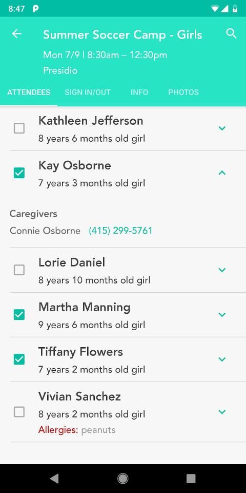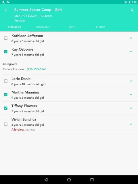* Take attendance and have attendee data handy (allergies, notes, contact info, etc.)