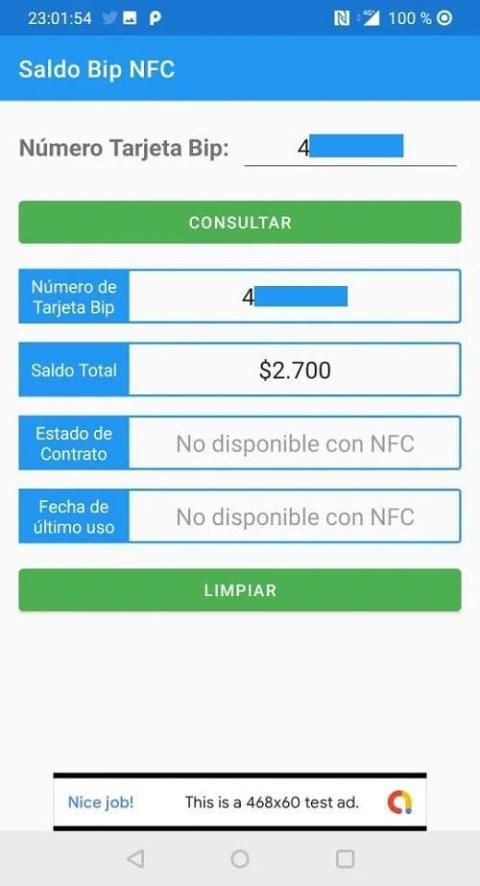 Consulta Saldo Bip NFC
