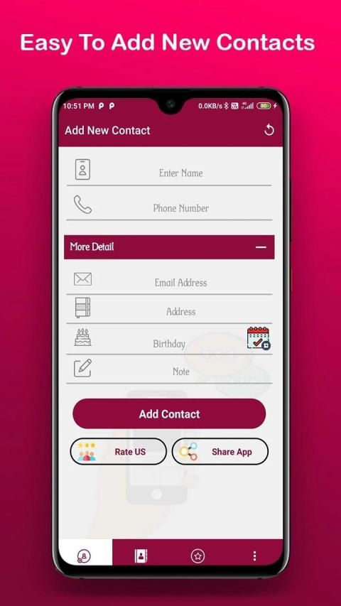 Now create contact is simple and can be add contact in just one touch. Save your time and save contact with just in seconds.