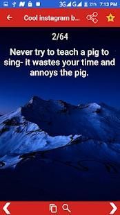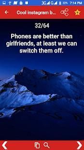 As Instagram grows older each year and more profiles are added, it becomes harder to find a cool bio for Instagram. However, With this App you got cool Instagram bios that are guaranteed to raise some interest around your account. We have options that will make people laugh, nod in agreement and just generally, spike their interest in order to find out more about you.