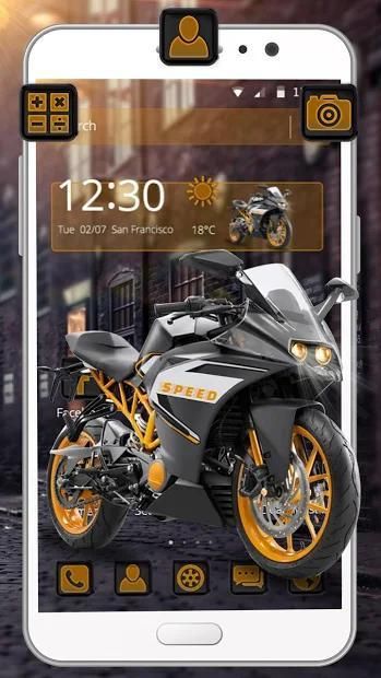 1. ठंडा स्क्रीन और इंटरफेस: स्पीड मोटोबाइक थीम शांत वॉलपेपर के साथ एकीकृत है। यह आपके फोन को और अधिक विशिष्ट बना देगा।