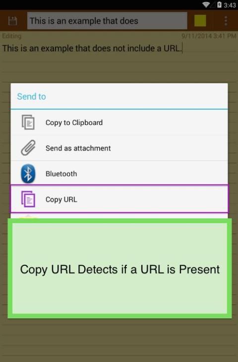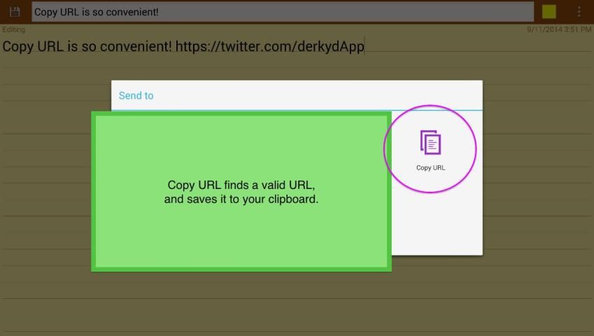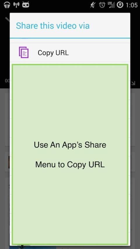 उदाहरण के लिए, 'कॉपी यूआरएल' यूट्यूब अनुप्रयोग में शेयर बटन दबाने और चयन क्लिपबोर्ड करने के लिए वीडियो यूआरएल को कॉपी और शीर्षक जानकारी जैसे अतिरिक्त पाठ उपेक्षा करेंगे.