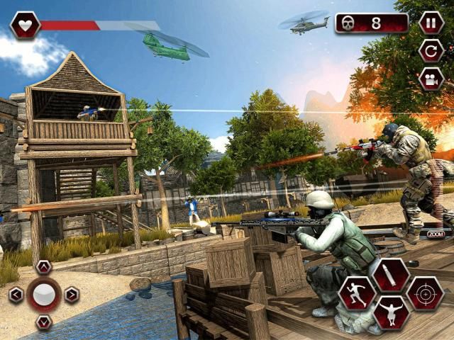 Your weapon operation ability. Only good operational control in the war game mission in order to play the power of a variety of weapons, fighting scenes in this third person shooter game have some awesome stunning remarks. It's is very action & strike base hits to play this game game in two different modes like in one side you are playing third person shooting game & on other hand this first-person shooter game, you can unlock and open all levels & missions. Action shooting game, only aim and shoot, and the modern enemy tough soldiers, assault soldiers, commanders fighting. Just fire with your guns like AK47, Grenades & Snipers and kill the enemy, let us start to play the world's greatest military attack game where you as a PVP shooter have unstoppable qualities to shoot & kill. Command your National Army squad cause you are brave & skilled leader for this mission.