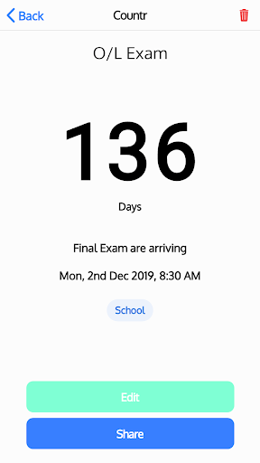 यह एक ऐसा ऐप है जो उलटी गिनती जोड़ने और उन्हें स्थानीय रूप से संग्रहीत करने की सुविधा प्रदान करता है।