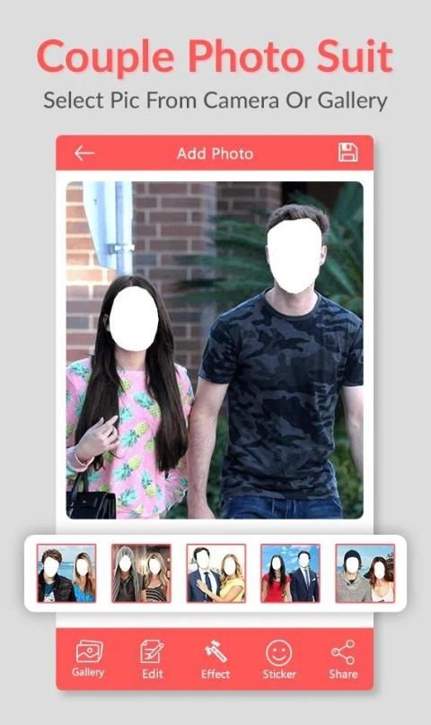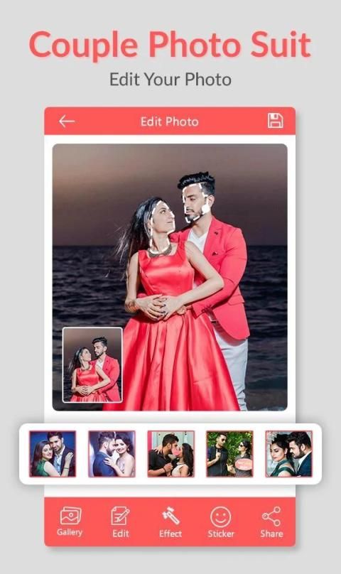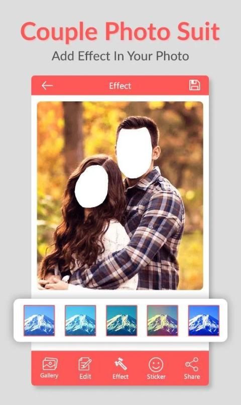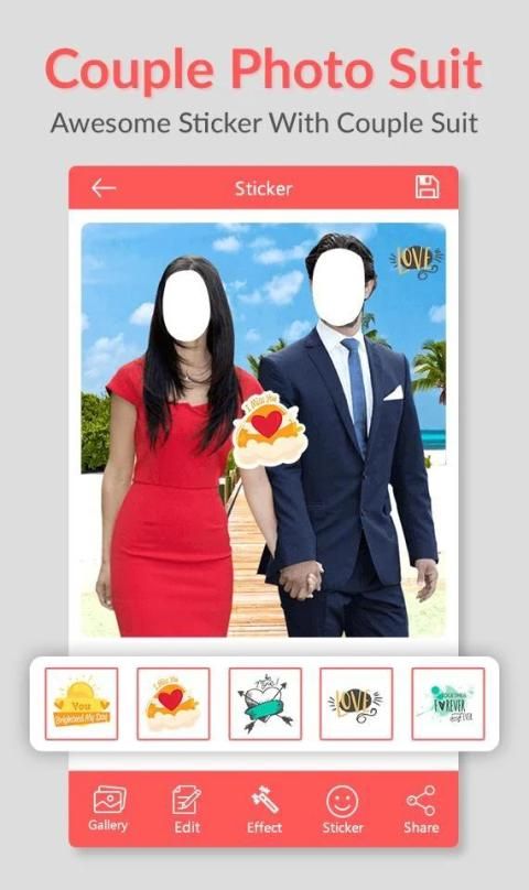 Couple photo suit and get a virtual wardrobe that complements your individual style. If you fascinating to each day life vogue and picture suit, couple photo suit camera app offer facility to offline camera result and largest frames for you. Just take a photo from your camera or select the photo from the gallery and start editing.