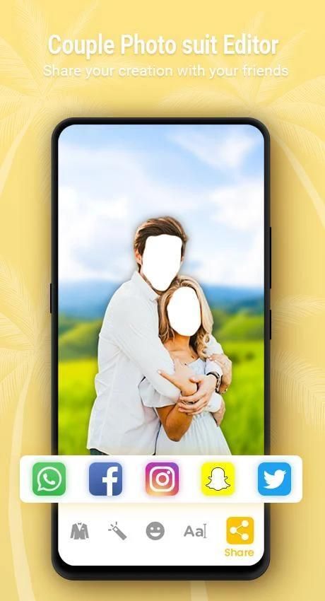 Couple photo suit and get a virtual wardrobe that complements your individual style. If you fascinating to each day life vogue and picture suit, couple photo suit camera app offer facility to offline camera result and largest frames for you. Just take a photo from your camera or select the photo from the gallery and start editing.