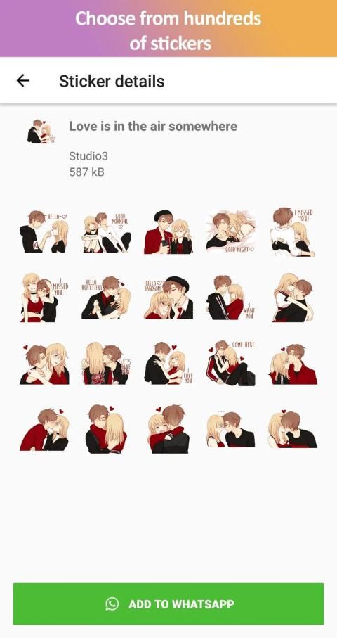 Couples Stickers is a mind blowing collection of stickers designed for you guys who love sending smiley to friends. Stickers make you stand out among others & easily catch their attention & maintain great relationship with your loved ones. Easy to send Sticker with others via WhatsApp and they will love it. Enjoy love chatting with Couples Stickers sticker pack! - WAStickerApps