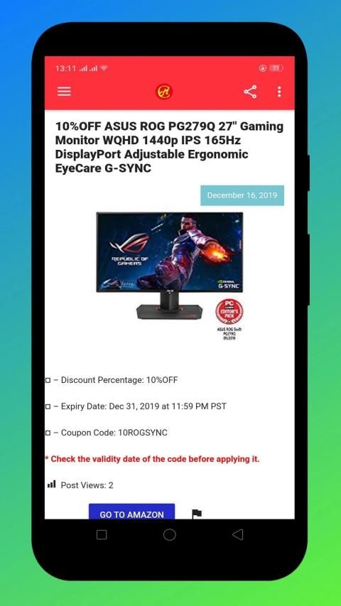* Notification system to notify users with new Amazon coupons, and Amazon promo code