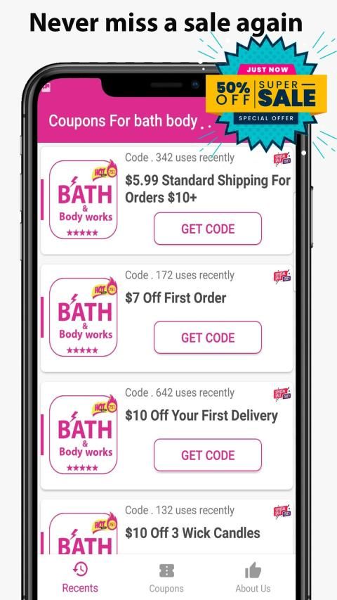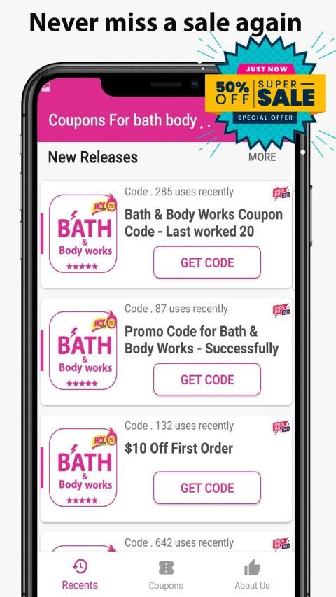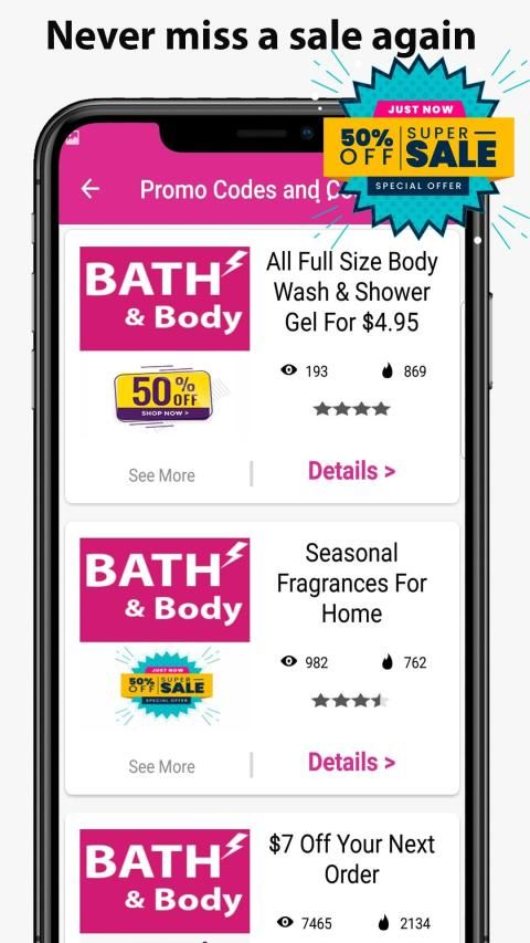 Download and enjoy our service, 20,000+ users downloaded Coupons For Bath & body latest version on 9Apps for free every week! All its functions are there and updated. This hot app was released on 2019-10-17. That’s it! You’re done?
