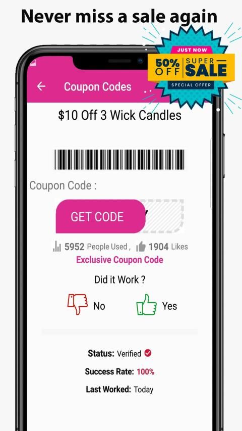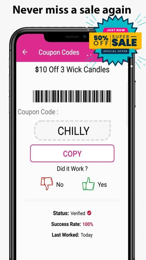 कूपन का उपयोग करने के लिए बस कोड को डुप्लिकेट करें और इसे अपनी इच्छा सूची एप्लिकेशन खरीदारी टोकरी पर गोंद करें।
