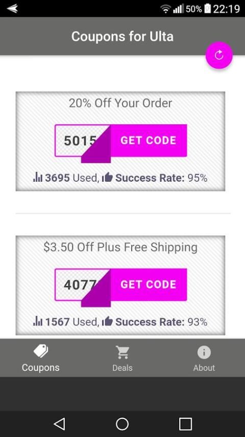 Find most popular android apps here! 20,000+ users downloaded Coupons for Ulta latest version on 9Apps for free every week! Fortunately, It's easy to get this popular app. This hot app was released on 2018-02-20. If you still need more information collecting extra factors, read below.