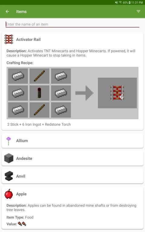 पूर्व Minecraft क्राफ्टिंग गाइड के रूप में जाना जाता है, इस एप्लिकेशन को हर खेल में क्राफ्टिंग नुस्खा और Minecraft के बारे में जानकारी के लिए और अधिक महत्वपूर्ण सूचियों के लिए एक गाइड है।