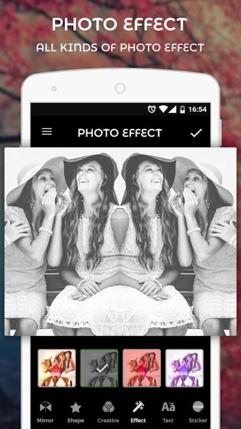 मिरर तस्वीर संपादक आप तस्वीर पर जादू दर्पण प्रभाव लागू करने देता है।