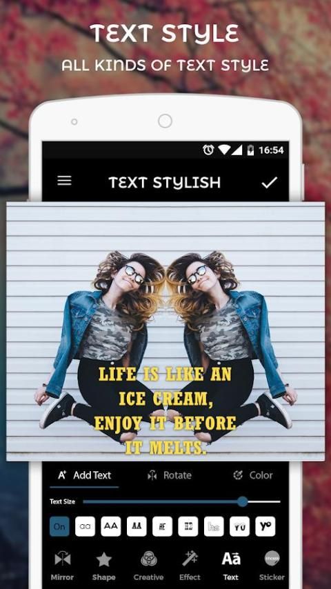 नवीनतम पाठ शैली जो इस ऐप्लिकेशन में में निर्मित प्रदान करना। और यह भी आपकी फोटो को सजाने के लिए 100 + अजीब स्टिकर प्रदान करते हैं।