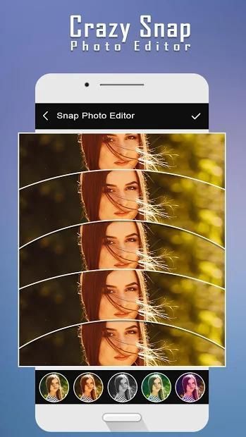 • Crazy Snap Photo Editor makes wonderful photos with Snap Effects and Filters and gets more likes and more followers.