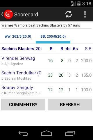 Provides Full Scorecard of the ongoing match and Completed matches. Also Provides ball by ball Text commentary for ongoing Live match.