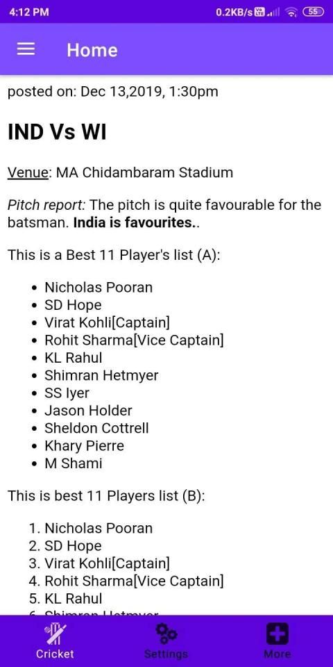 Our experts give the best 11 players list after lot of scientific analysis of the match.