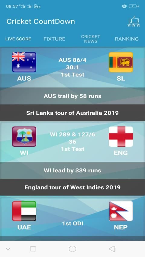क्रिकेट काउंटडाउन में आप पाते हैं