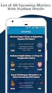 - App Provides Full details about upcoming matches and Series with Date and Venue.