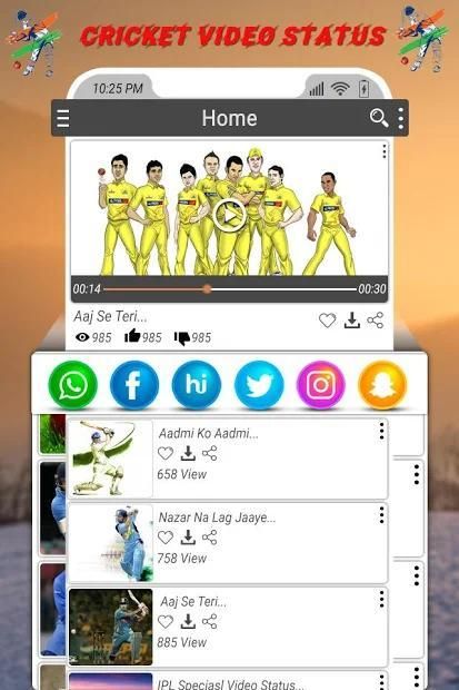 क्रिकेट वीडियो स्टेटसएप क्रिकेट गॉड मास्टर, क्रिकेट लव, क्रिकेट गाने, क्रिकेट मशहूर, और क्रिकेट सुपर हिट वीडियो का सबसे बड़ा संग्रह देता है।