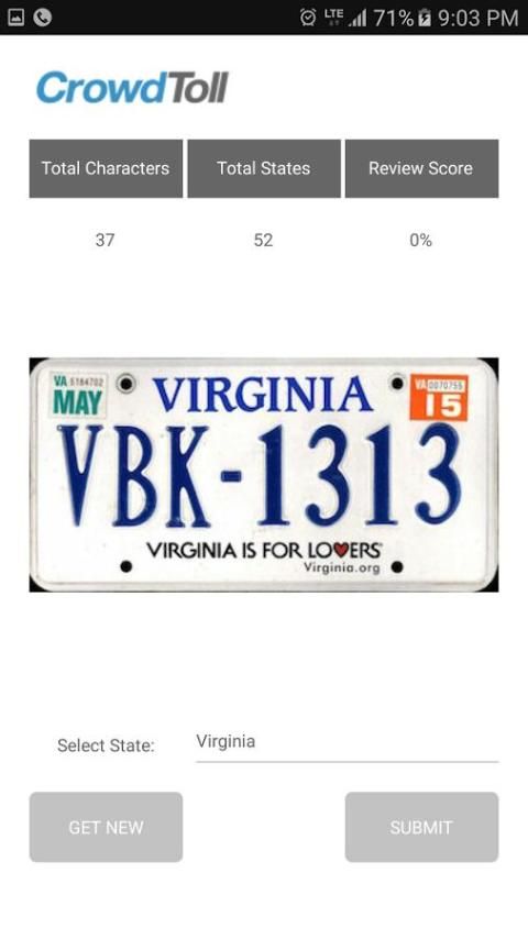 CrowdToll एक त्वरित तरीका दोनों लाइसेंस प्लेट पात्रों और संबद्ध राज्य की समीक्षा करने के रूप में प्रदान की जाती है।