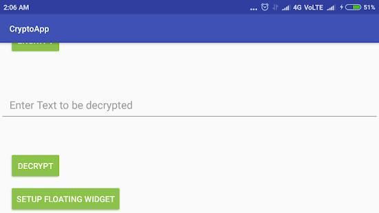 We have added a new feature of "SETUP FLOATING WIDGET" in order to make you multitasker, so that you can encrypt your message while opening another app and easily encrypt or decrypt data.