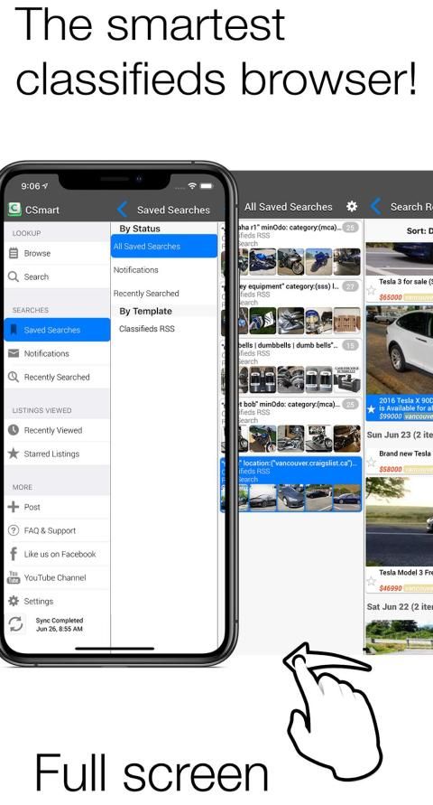 CSmart is the SMARTEST classifieds browser which unlocks the hidden potential of online classifieds. The quickest way to browse and search with excellent features like multi-city saved searches, notifications, starred/favorite listings, search history and previously viewed listings history all in one easy to use screen.