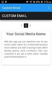 इस एप्लिकेशन के साथ आप अनुकूलित व्यावसायिक ईमेल पता जिससे आपके व्यवसाय के कुछ काटने किनारों ब्रांडों देने बना सकते हैं और अपने ग्राहकों में अधिक विश्वास पैदा करने के लिए सक्षम हो जाएगा।