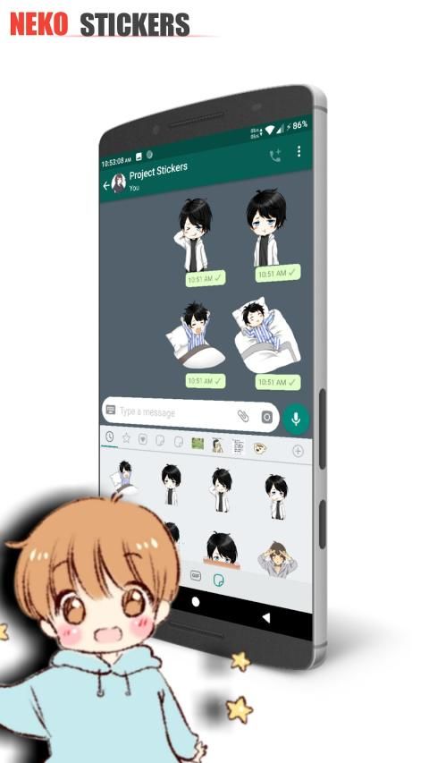 व्हाट्सएप के लिए प्यारा लड़का स्टिकर का उपयोग करना आसान है!