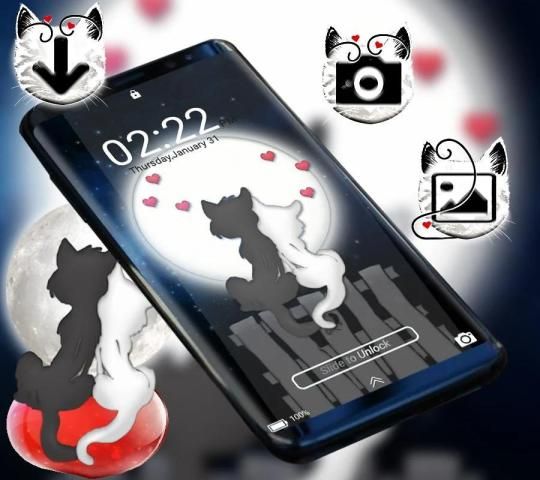 ☞ This Cute Cat Love Theme also have lock screen for extra protection with beautiful lock style to make your phone more beautiful