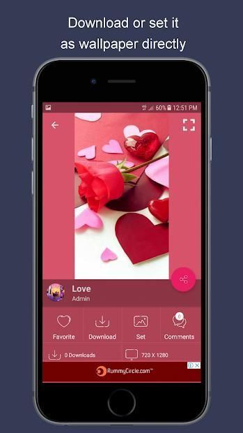 * अपना पसंदीदा वॉलपेपर डाउनलोड करें और इसे अपने फोन / टैबलेट में सेव करें।