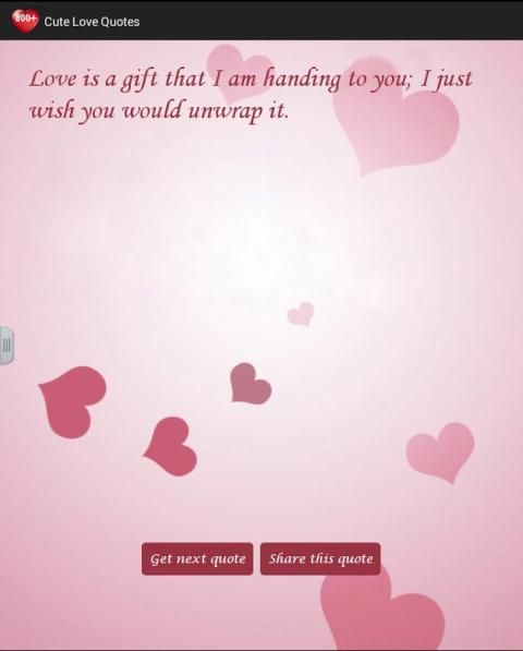 There's no denying the fact that 20,000+ users downloaded Cute Love Quotes latest version on 9Apps for free every week! Once you've used it, you'll be attracted. This hot app was released on 2016-08-28. It is available as a free download on 9Apps.
