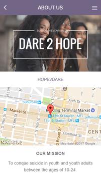 Download the exclusive new DARE2HOPE App! App features: -Suicide Survivors -Support Groups -Free Resources And so much more!
