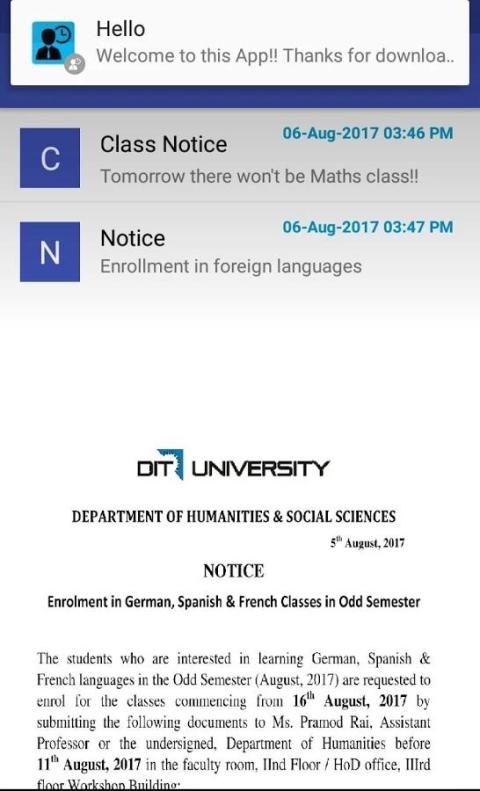 DIT विश्वविद्यालय के छात्रों के लिए एक ऐप