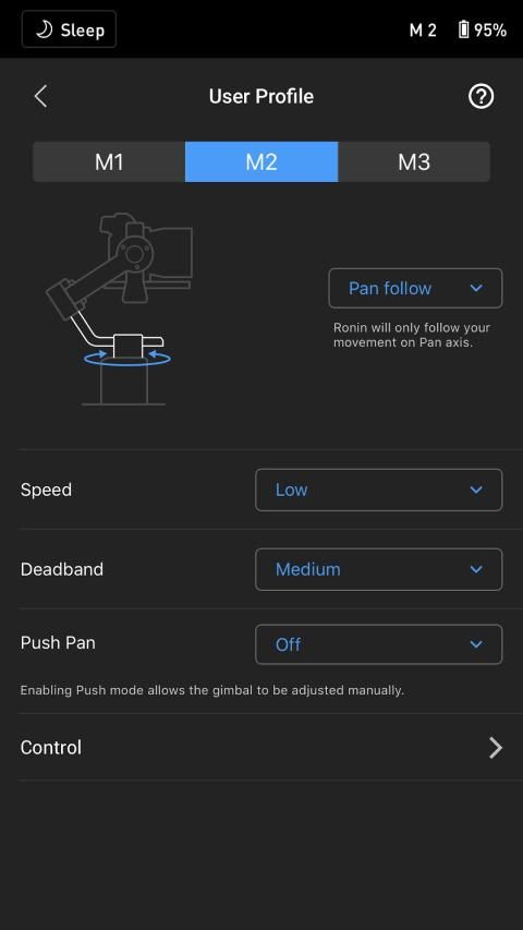 2. New Force Mobile function for controlling gimbal movement via the smartphone.