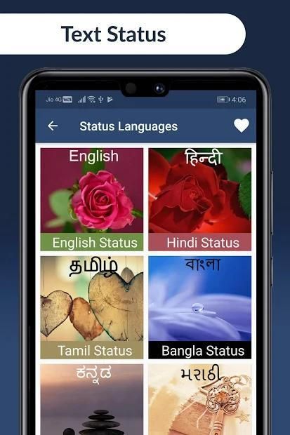 Offline Status for WhatsApp. DP and Status has more than 10,000 status which works completely offline and has more than 100 categories and 9 languages. Hindi Status, English Status, Marathi Status, Punjabi Status, Kannada Status, Bangla Status, Gujarati Status, Tamil Status, Telugu Status